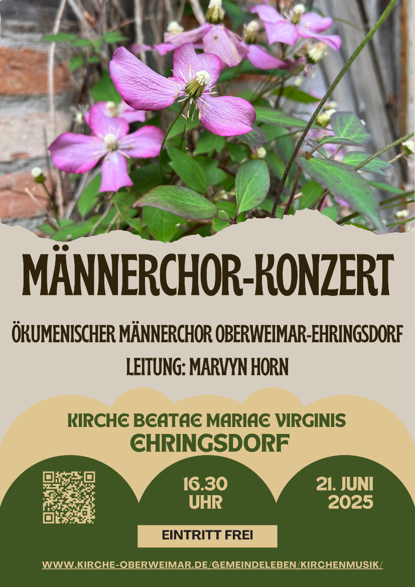 Der Männerchor wird geleitet von Marvyn Horn. Zu den Proben trifft er sich aller vierzehn Tage im Gemeindesaal im Pfarrhaus Oberweimar.
